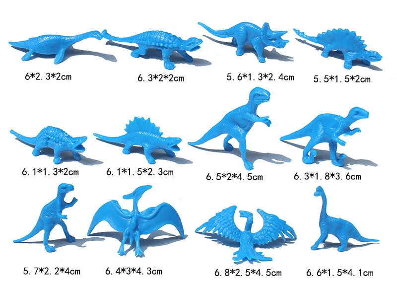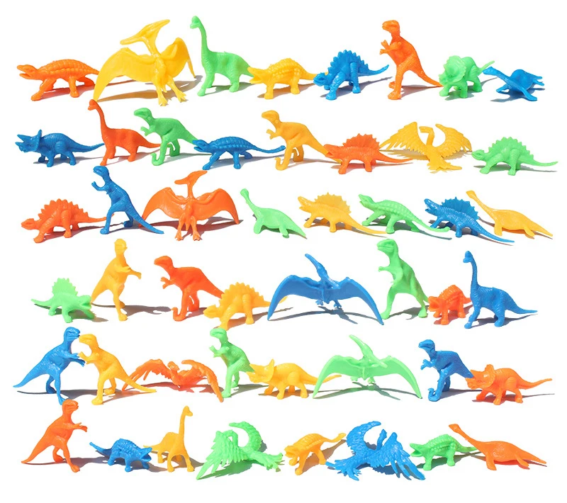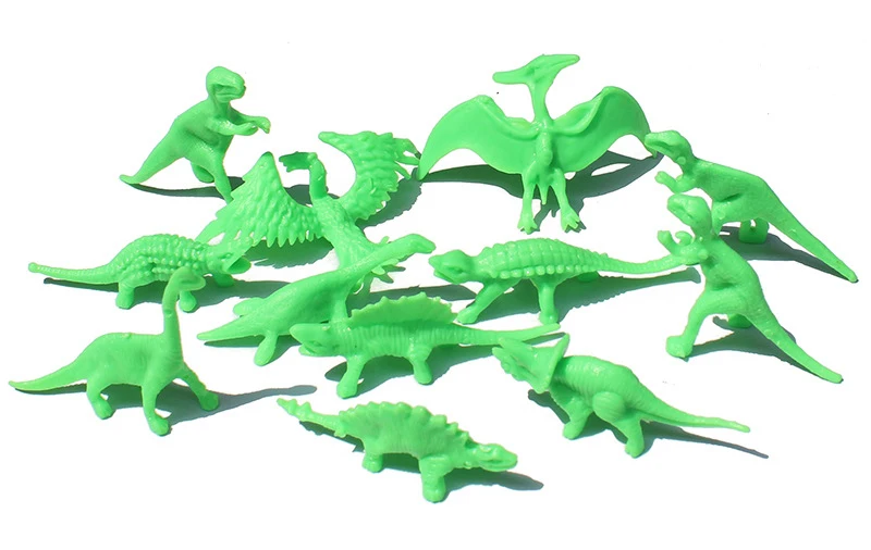 Material: Ink-colored dinosaur is solid PP plastic, the surface is painted; candy-colored dinosaur is a new environmentally-friendly polychlorinated plastic (pvc, tough, not easy to break)