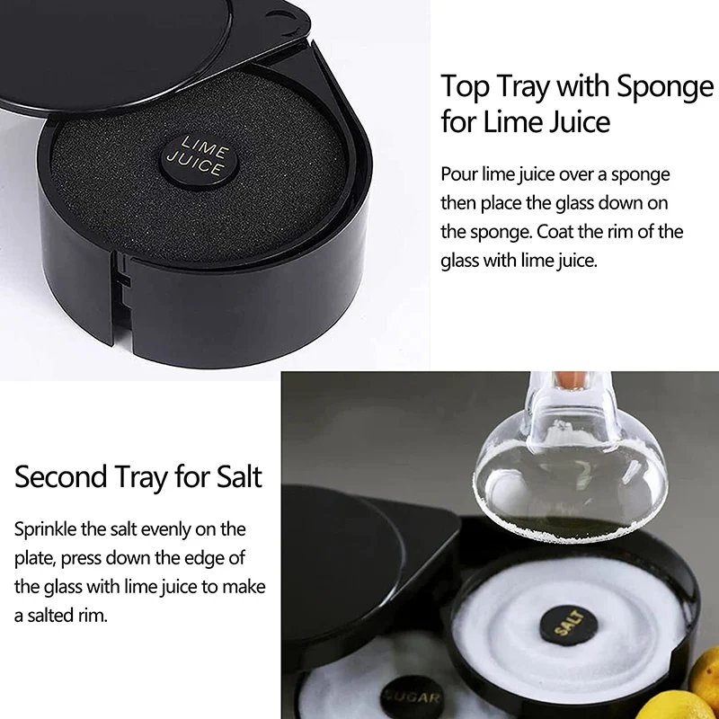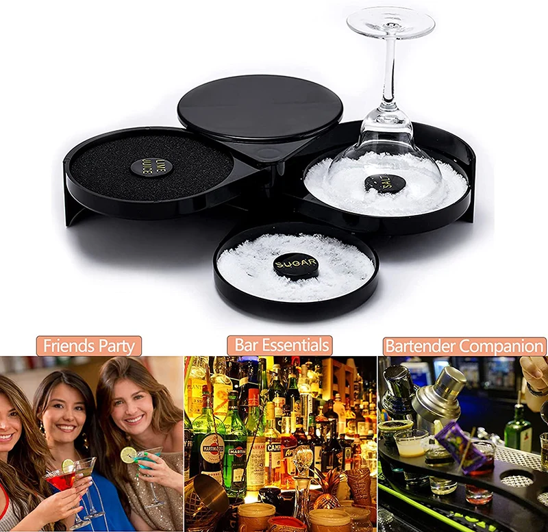 【Top Tray with Sponge】Just covers the rim with the sponge, gently press down on the cocktail glass to produce a perfect layer of juice to hold the salted or sugared rim. The juice sponge is washable and reusable.