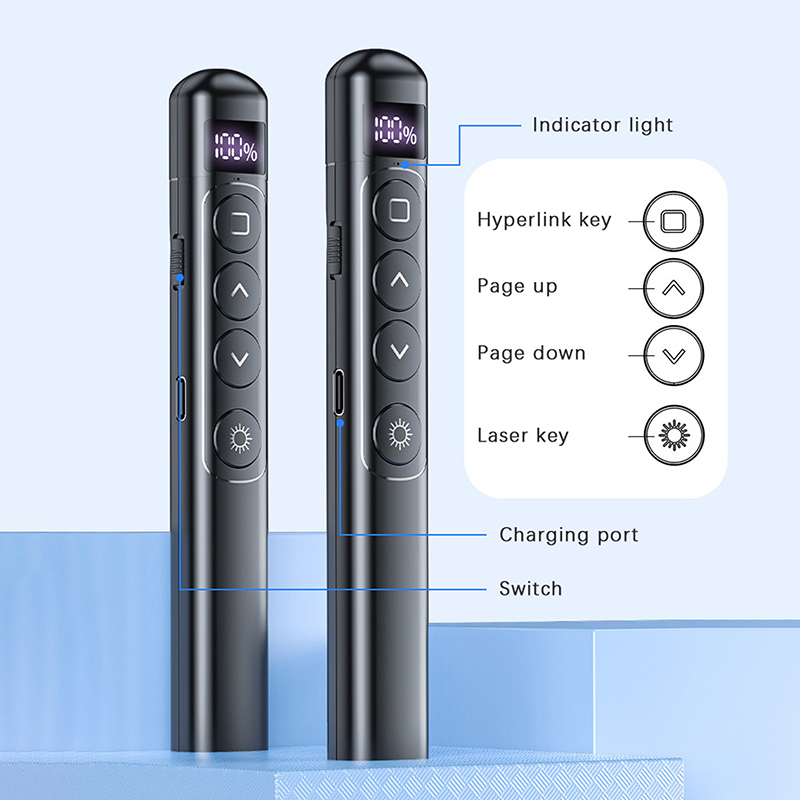 3. Easy to operate: The design is simple and easy to operate, easy to control with one hand, one-click page turning and laser indication, suitable for various speech and report occasions.